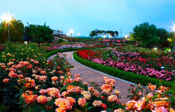 축제는 밤 10시까지 운영되며, 해가 진 뒤 조명이 켜진 장미정원은 낮과는 또 다른 분위기를 자아냅니다.