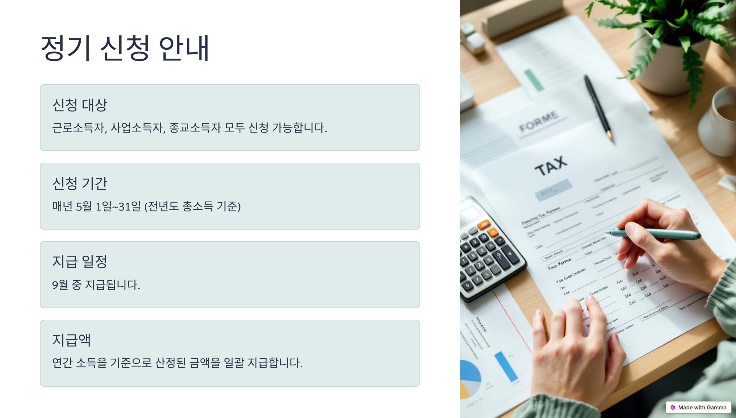 ✅ 근로소득자, 사업소득자, 종교소득자 모두 가능