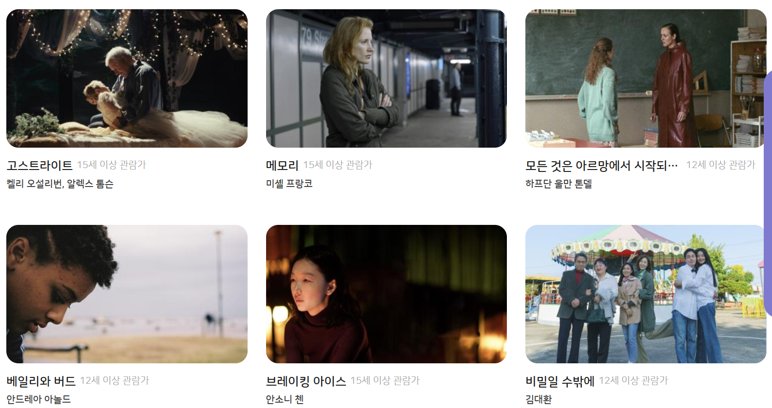 그 외에도 다양한 영화 상영작들이 준비되어 있습니다.