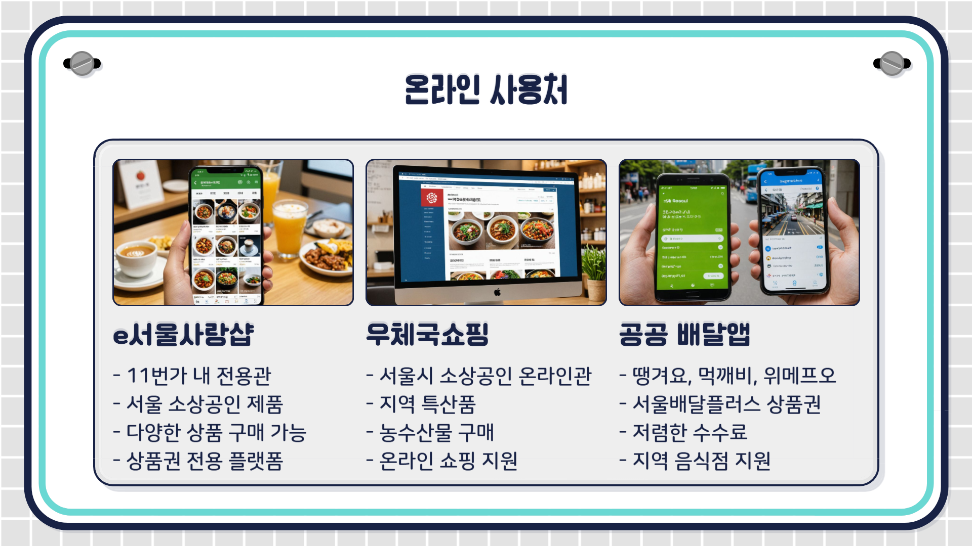 - 광역 상품권: 서울시 어디서나 사용 가능