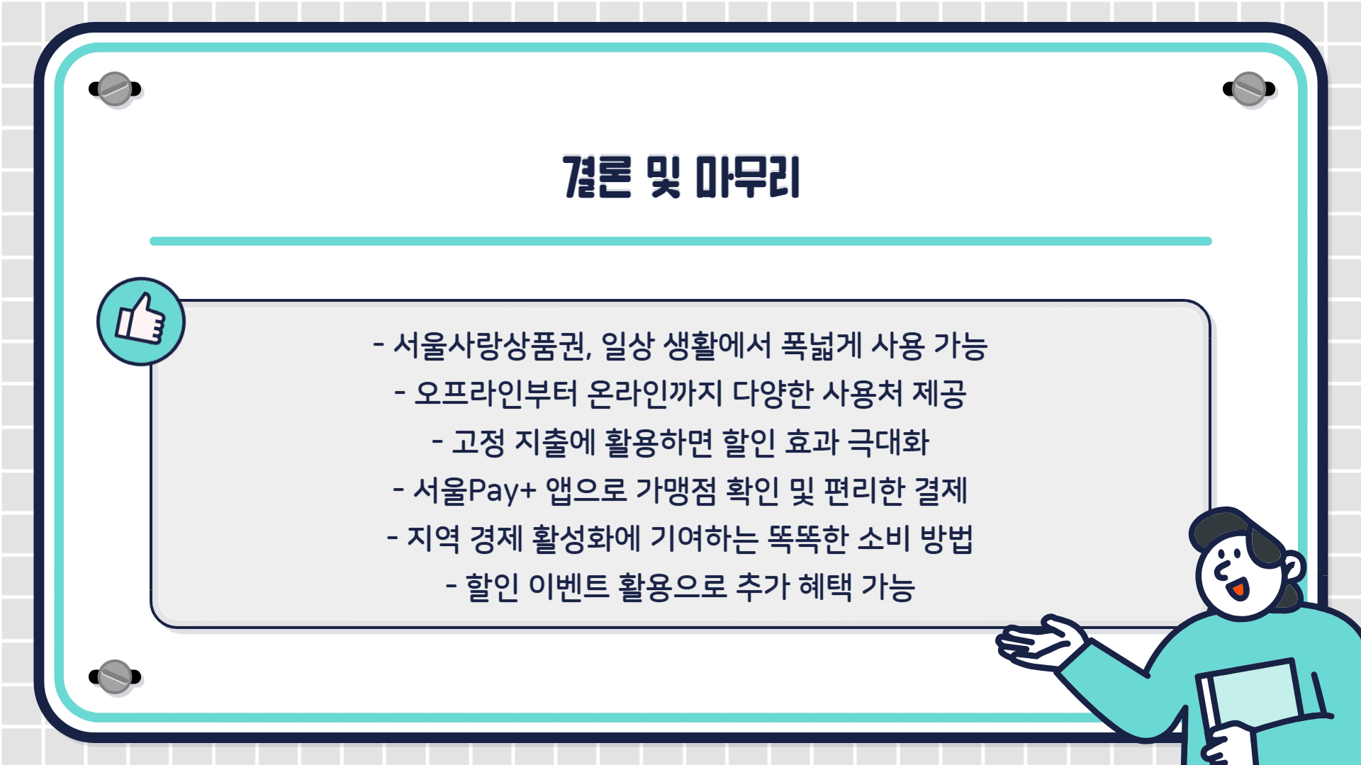 서울사랑상품권은 할인 혜택도 좋지만, 어디에서 사용할 수 있는지가 가장 궁금한 부분 아닐까요?