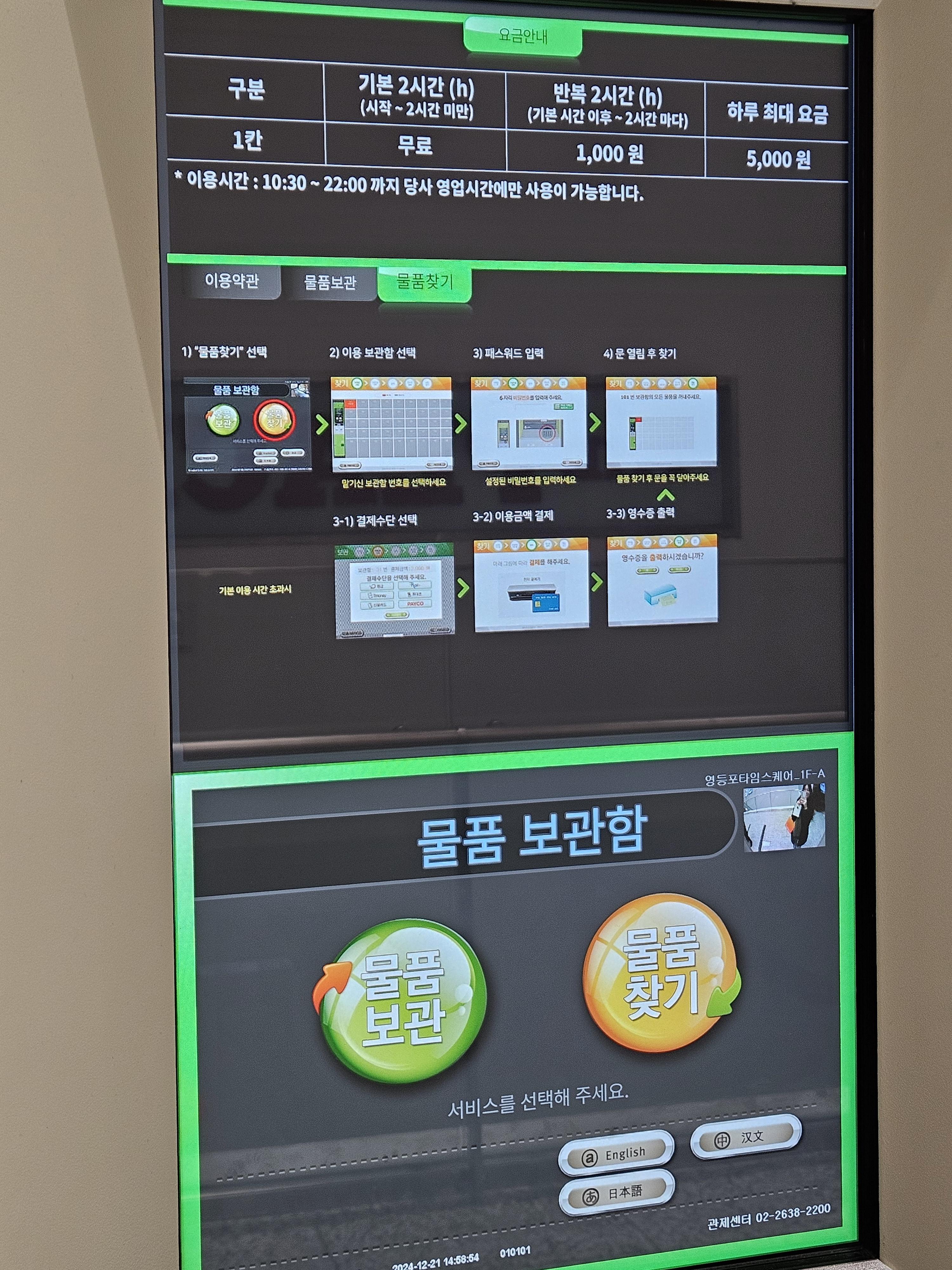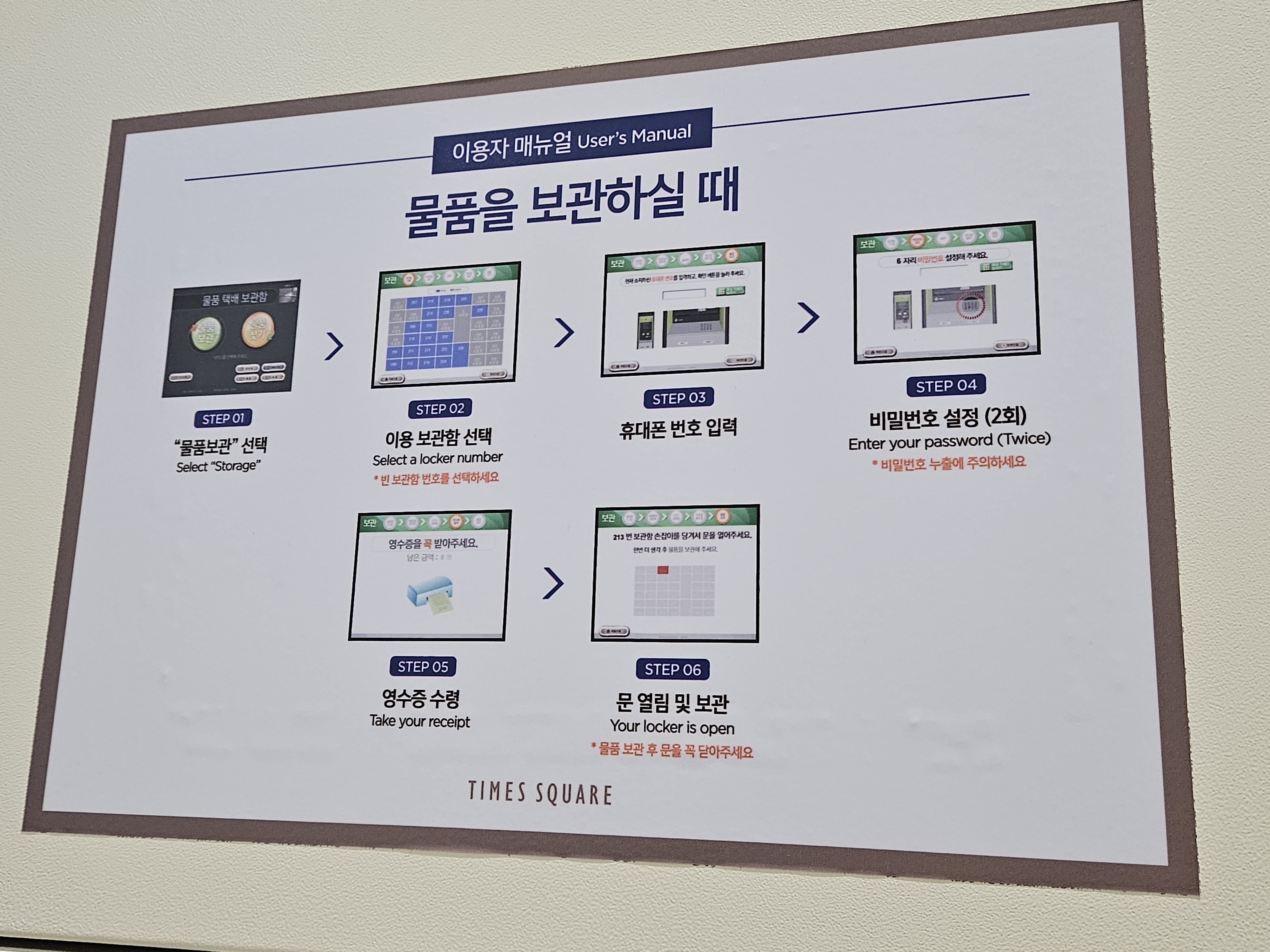 1층의 물품보관소는 사진과 같이 이용자매뉴얼이 붙어있습니다.