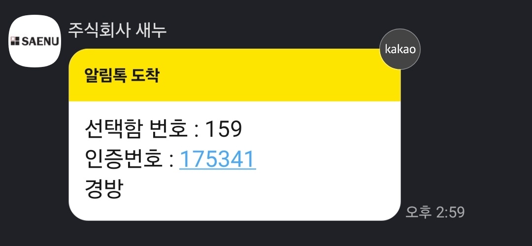 또한 휴대폰 인증은 입력한 번호의 카카오톡으로 인증번호가 전달된다는 점! 일반 휴대폰의 문자메시지가 아닌 카톡으로 오도록 설정되어 있기 때문에 카톡을 확인 후 인증번호를 입력해 주시면 됩니다.