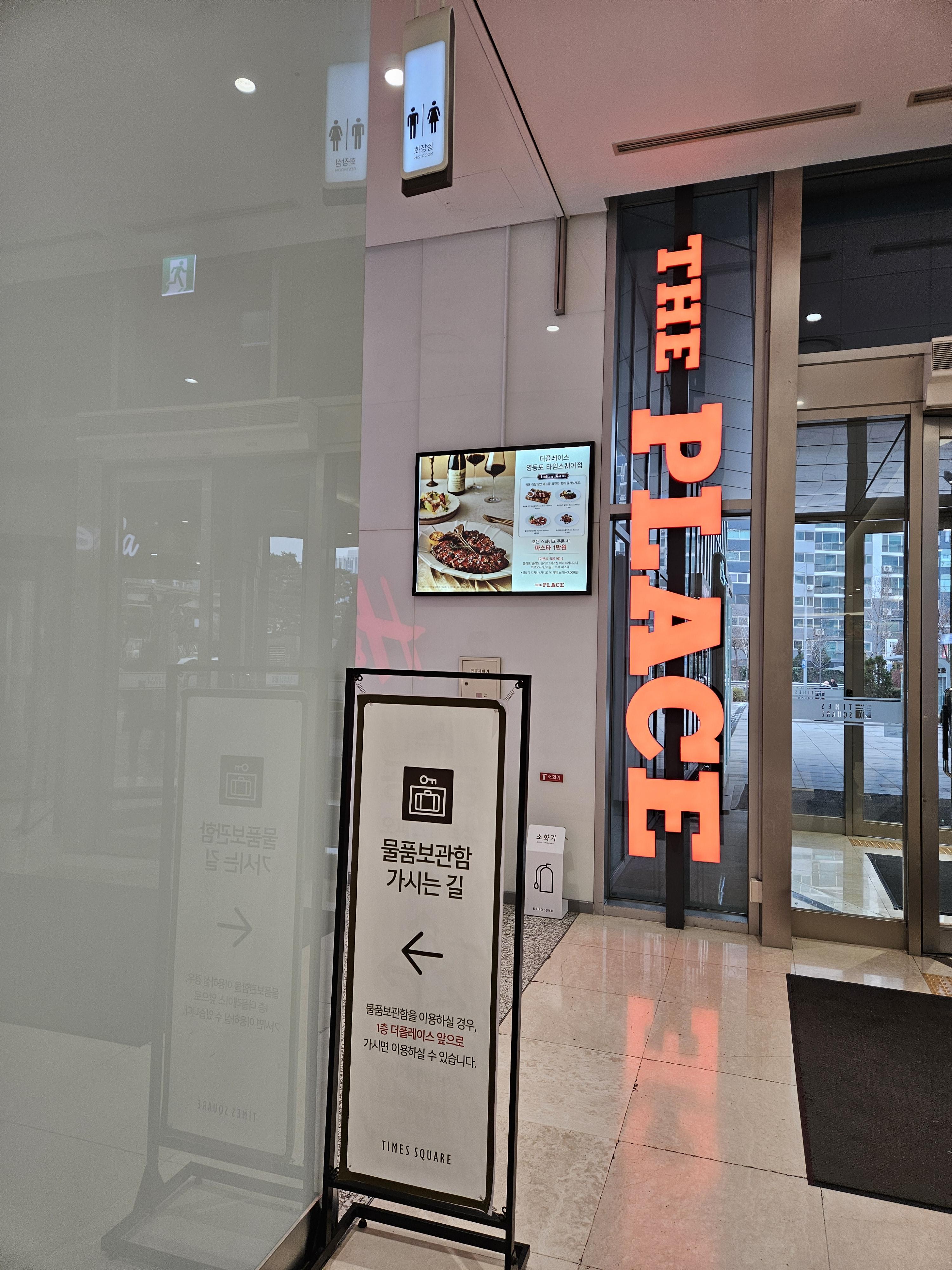영등포 타임스퀘어의 물품보관소는 1층, 4번 게이트 근처의 더플레이스(The Place)를 끼고 돌면 찾으실 수 있습니다.