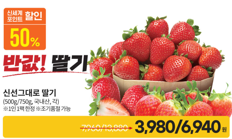 봄이 다가오면서 딸기가 제철인데요. 신선한 딸기를 최대 50% 할인된 가격에 구매할 수 있습니다.