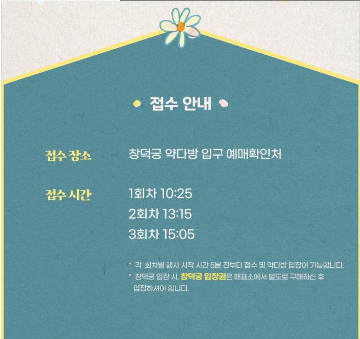- 창덕궁 입장 시, 창덕궁 입장권 별도 구매 필요