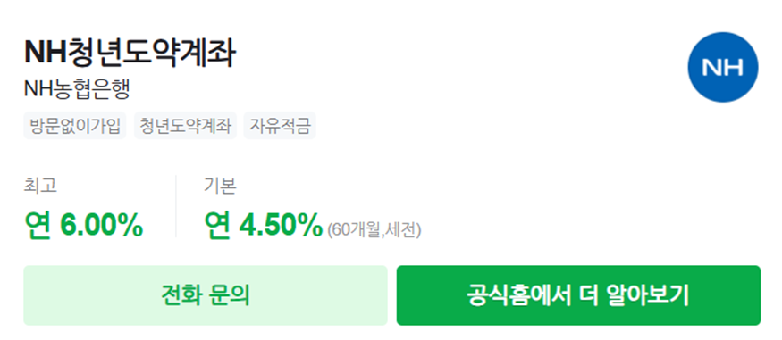 가입일까지 직전 1년간 농협 예, 적금 가입X(주택청약 포함) or NH청년희망적금 만기해지 고객