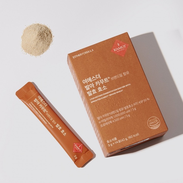 | 여에스더 발아 카무트 발효효소 | 발아 공법, 100% 천연 발효, 100만 unit | 1일 1포, 그대로 또는 물과 함께 | 정제 효소 無, 고효율 프리미엄 |