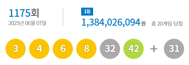 - 당첨번호: 3, 4, 6, 8, 32, 42 (보너스: 31)