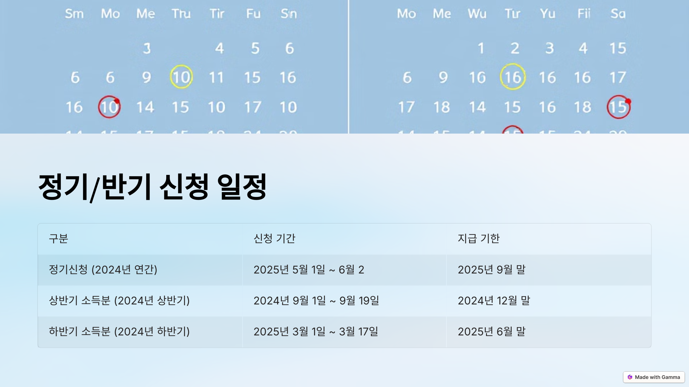 - 상반기 소득분 신청 기간: 2024년 9월 1일 ~ 9월 17일