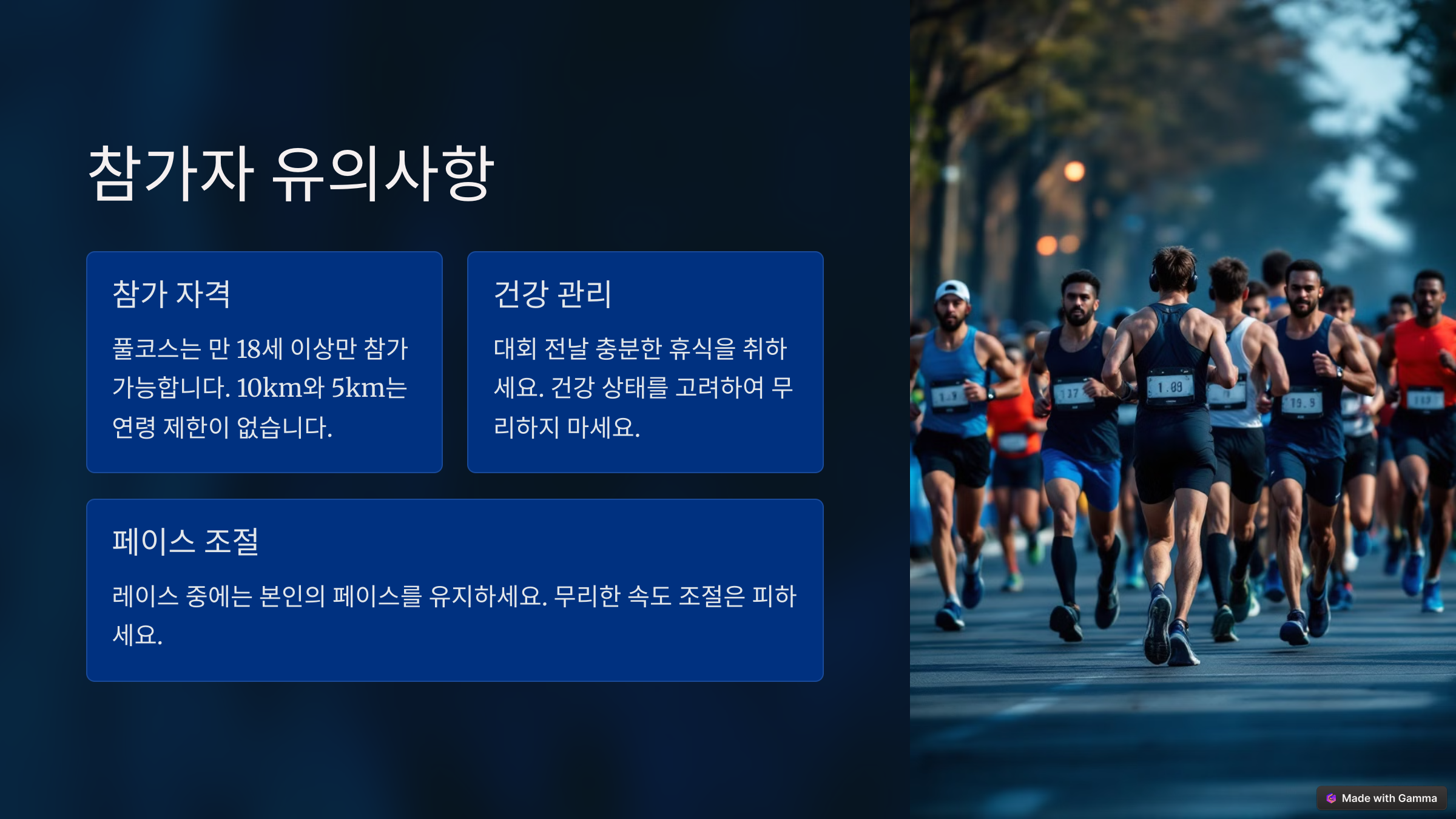 📌 안전한 레이스를 위해 본인의 컨디션을 고려한 페이스 조절이 필요합니다.