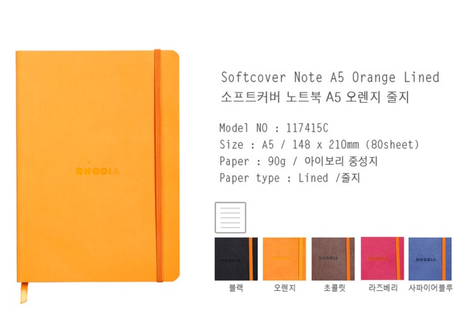 불렛저널을 쓰시는 분들께 추천드리는 또다른 노트 상품은 바로 로디아 소프트커버 노트인데요. 적당히 고급스럽고 만년필을 감당할 수 있는 적당히 두꺼운 종이를 장착하고 있습니다. 일반 노트와 다르게 가름끈이 있어 다이어리로 사용하기에 더없이 좋은 상품입니다. 가격도 일반 다이어리들과 비교해 비싸지 않아 더 경쟁력 있는 상품입니다. 아쉬운 점은 소프트 커버라 표지가 조금 외상에 취약한 편이라고 합니다.