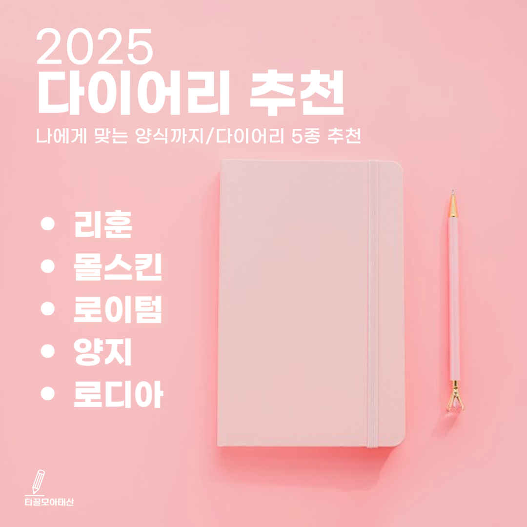 2025년이 다가오고 있습니다. 이제 정말 본격적으로 새해를 위해 준비를 해야할 시기가 왔는데요. 원래 진정한 새해 계획은 1월 1일이 아니라, 한달 전부터 하는게 정석이라는 거, 아시죠? 오늘은 2025년 완변 준비를 위해 필요한 다이어리를 추천드리려고 합니다. 나에게 꼭 맞는 다이어리 고르시고 의욕가득! 새해를 준비해 보아요.