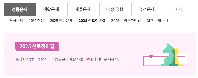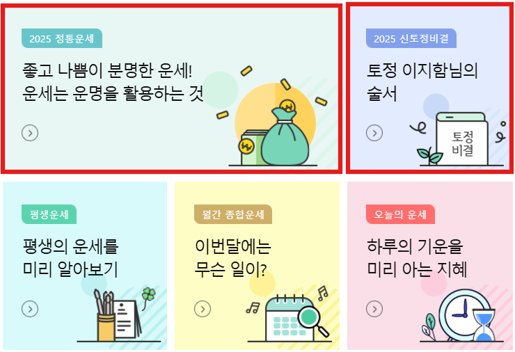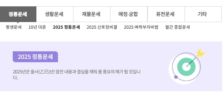 - 2025년 운세 키워드: 그 해에 어떤 변화가 일어날지, 어떤 일을 주의해야 하는 지 등을 알려줌