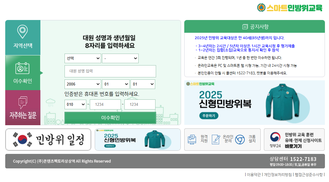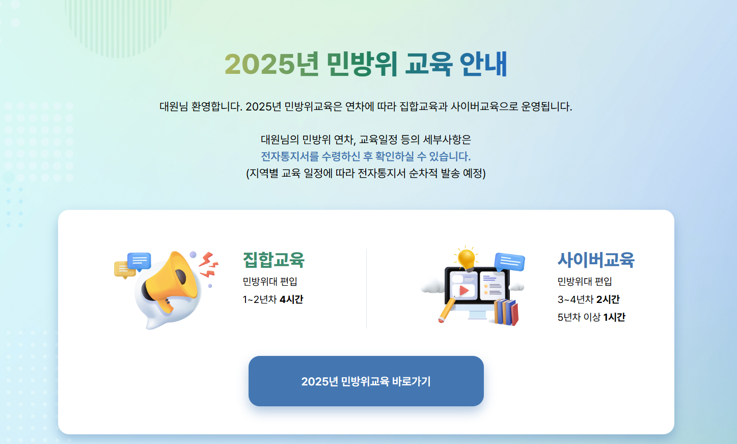 2025 민방위 사이버교육 대상자 온라인 조회 기간 일정