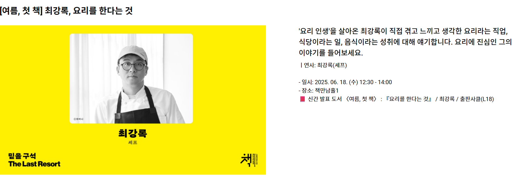 올해는 6월 18일부터 6월 22일까지 코엑스 A&B1홀에서 열리며, ‘믿을 구석 The Last Resort’라는 주제로 펼쳐집니다