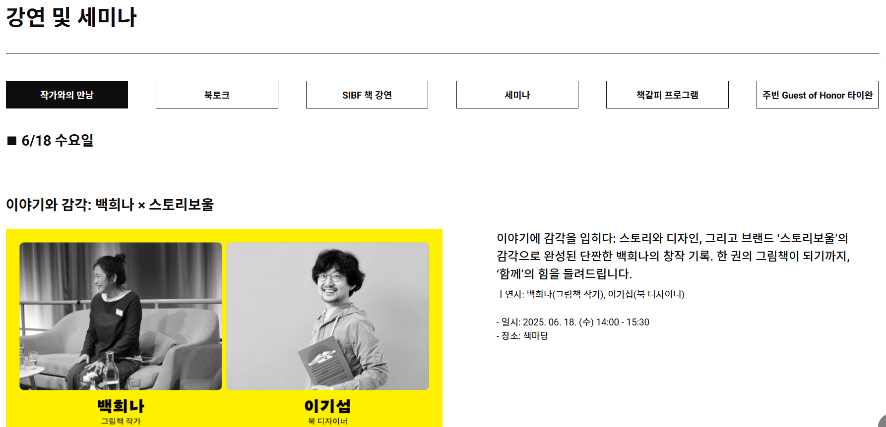 2025 서울국제도서전 일자별 프로그램