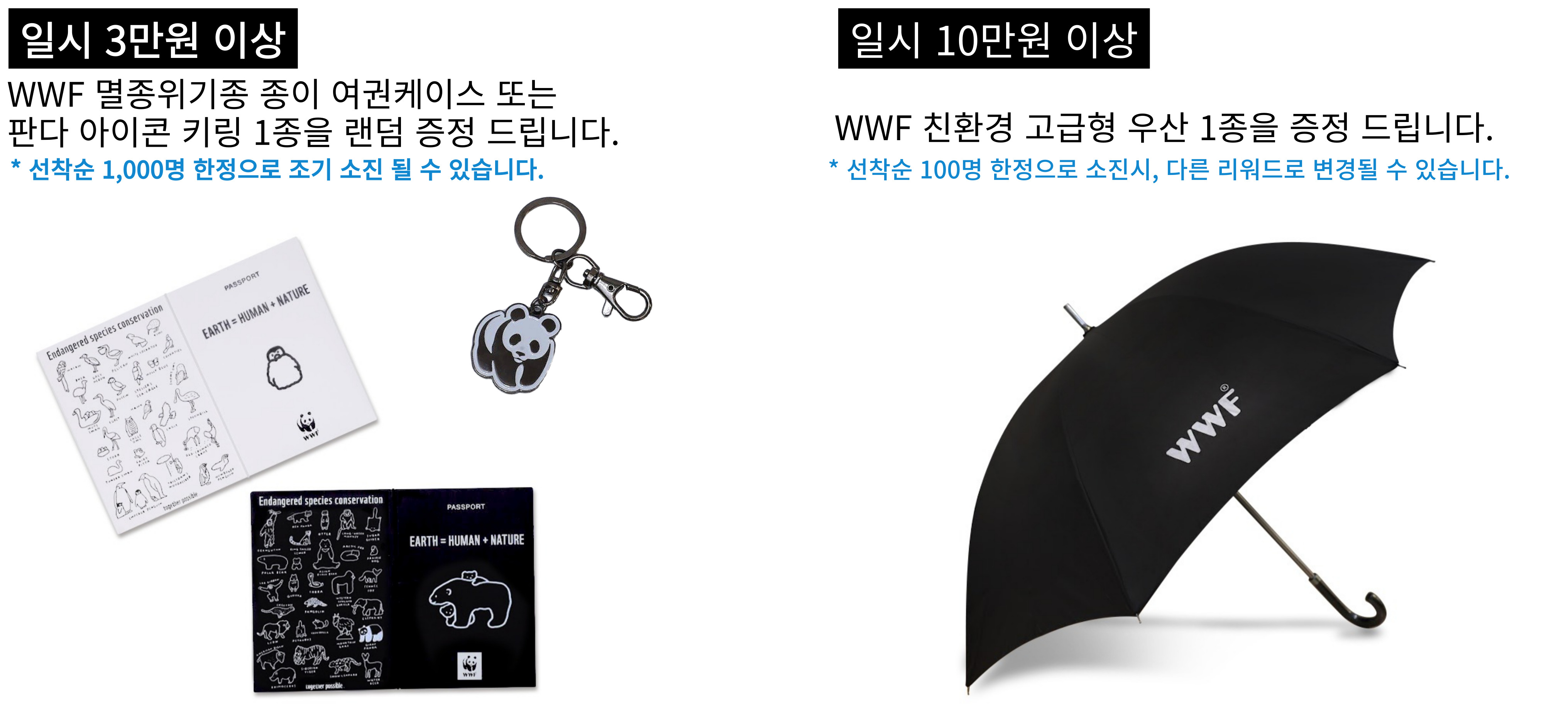또한, WWF 특별 후원 프로그램에 동참하면 후원금은 산불 복구와 멸종 위기종 보호 활동에 사용되는데요. 특정 금액이상 기부를 하게되면 특별한 기념품까지 만나볼 수 있다고 합니다.