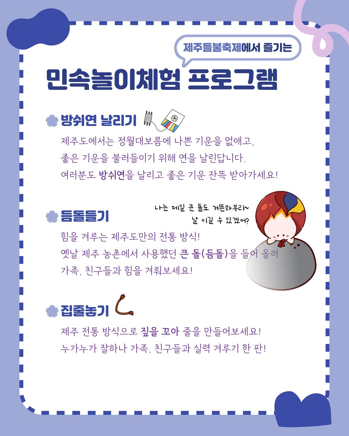 ✅ 달집태우기 유지 → 제주 전통 요소는 그대로 보존