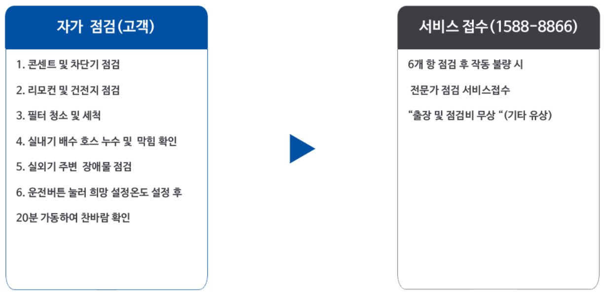 ※ 냉매 보충, 부품 교체, 사다리차 사용은 유료일 수 있습니다.